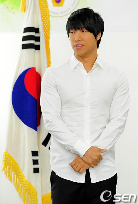 가수 SG워너비의 멤버 김진호가 9일 오전 서울 강동 경찰서에서 중요 범인 검거 유공 표창을 받았다.