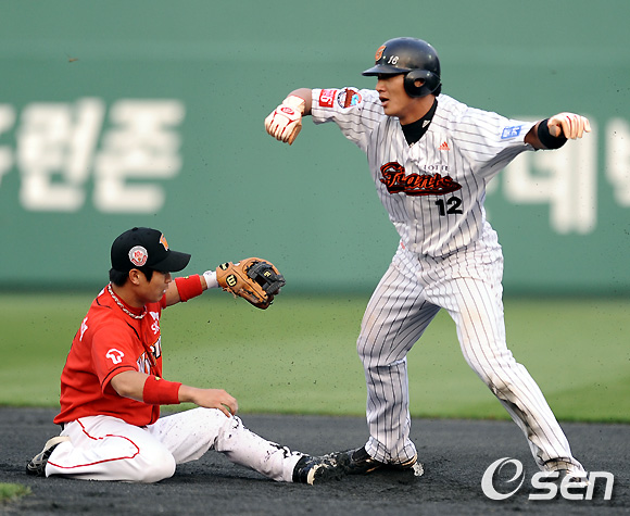 1회말 무사 1루 롯데 손아섭의 타석때 1루 주자 김주찬이 2루 도루 시도해 세이프되고 있다. /soul1014@osen.co.kr