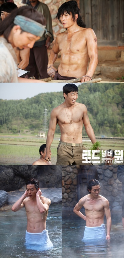 또한 수목극 '로드넘버원'에서 인상적인 연기를 보여주고 있는 윤계상 역시 상의 탈의로 탄탄한 복근을 공개했다.