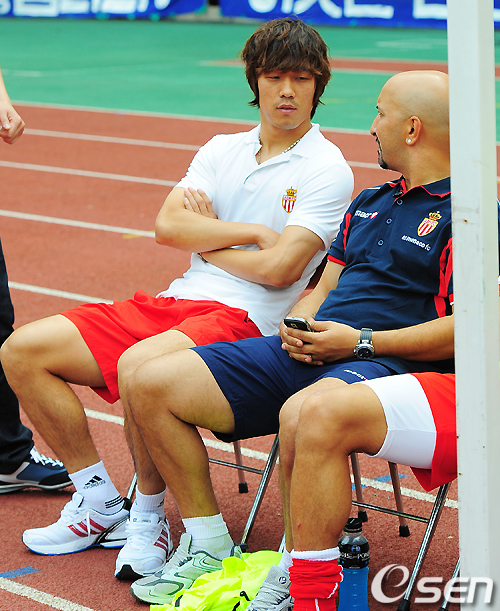 전반 박주영이 벤치에 앉아서 동료들과 얘기를 나누고 있다./rumi@osen.co.kr