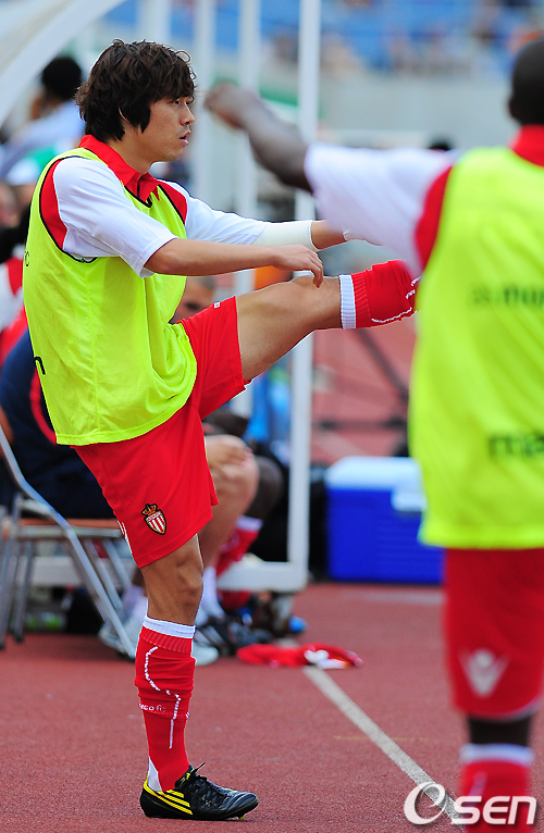 후반 모나코 박주영이 몸을 풀며 경기를 주시하고 있다./rumi@osen.co.kr