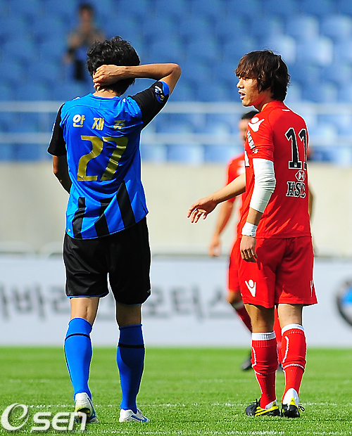 후반 모나코 박주영과 인천 안재준이 얘기를 나누고 있다./rumi@osen.co.kr