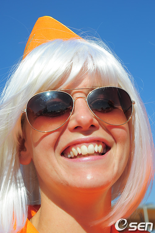 섹시한 네덜란드 여성이 승무원 복장으로 네덜란드를 응원하고 있다. /spjj@osen.co.kr