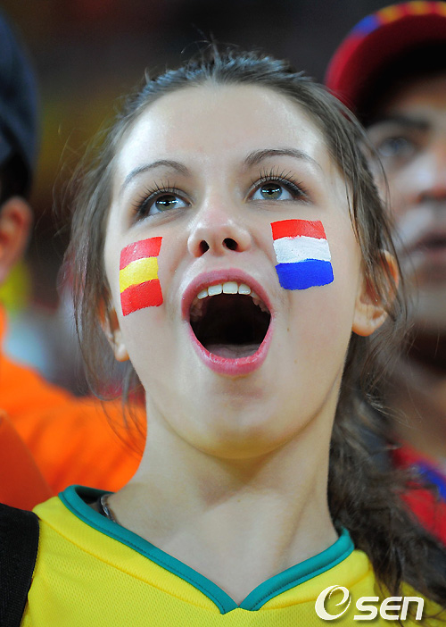 남아공의 한 미녀가 스페인을 응원하고 있다. /song@osen.co.kr