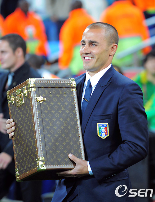 경기 전 2006 월드컵 우승팀 이탈리아의 칸나바로가 루이비통 가방에 보관된 월드컵을 가지고 나오고 있다. /song@osen.co.kr