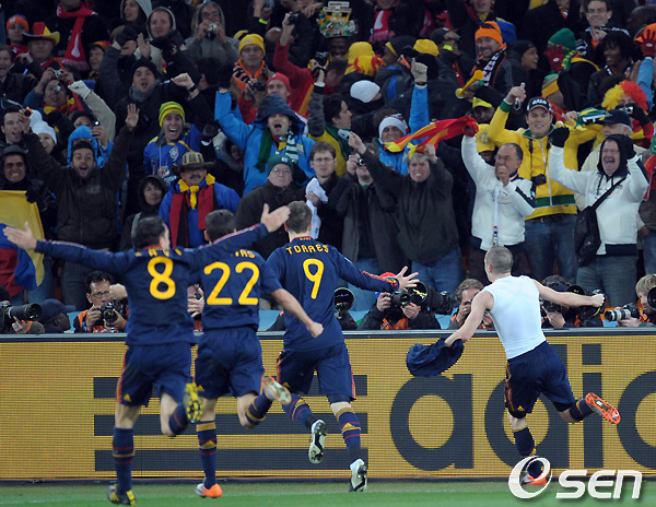 12일(한국시간) 새벽 요하네스버그 사커 시티에서 벌어진 경기서 스페인은 네덜란드와 연장혈투 끝에 연장 후반 이니에스타의 결승골로 1-0으로 승리 월드컵 역사 첫 우승의 감격을 누렸다.