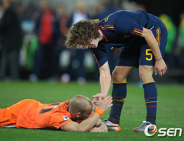 스페인 푸욜이 네덜란드 스네이더를 위로하고 있다. /song@osen.co.kr