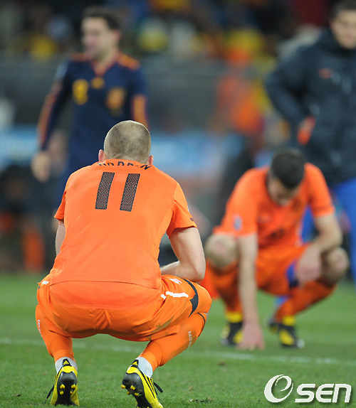 경기종료 휘슬이 울리자 네덜란드 로벤이 아쉬운 모습으로 주저앉아 있다. /song@osen.co.kr