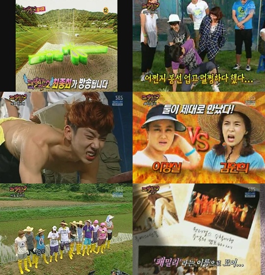이날 '패떴 2' 마지막회는 골드미스 양정아, 송은이와 이경실, 소이현 등이 게스트로 출연해 각종 게임을 펼쳤다. 멤버들은 짝을 지어 단오 대표놀이인 제기차기 대결을 펼쳤고, 가장 부진한 조권과 소이현 커플이 차가운 창포물에 등목과 머리감기 벌칙이 주어졌다.