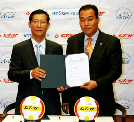 여자배구 KT&G 아리엘즈가 스타스포츠와 공식용품 후원계약을 맺었다.