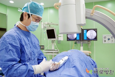 바로병원 척추 비수술 치료센터에서는 FIMS, 4無 신경성형술, 경막외 신경차단술 등 절개를 하지 않고 주사요법으로 디스크, 척추관 협착증 등 척추질환을 치료하고 있다. 특히 4無신경성형술 (Navi)은 2mm의 가느다란 관(카테터)을 꼬리뼈 구멍 사이로 삽입하여 환부까지 접근시킨 후 신경을 누르고 있는 조직을 제거하고 염증을 줄이는 약물을 주사로 투입하는 방법이다. 영상증폭장치(C-ARM)를 이용하여 카테터의 접근, 약물 주입, 조직 분리 과정을 정확하게 볼 수 있어 정확도와 안전성이 뛰어나다.