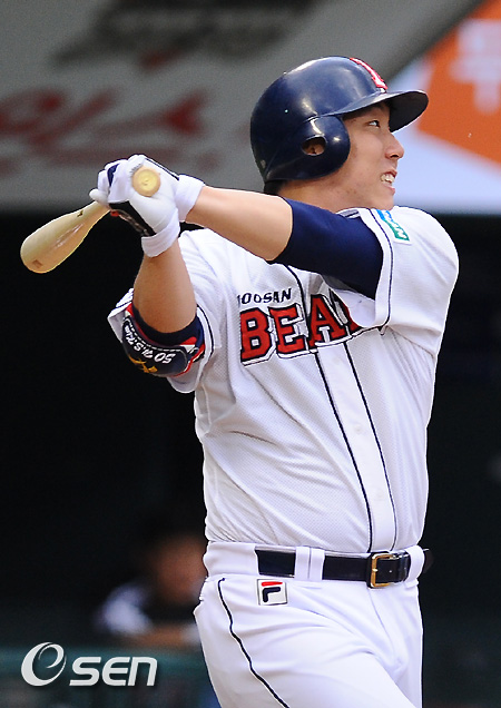 1회말 1사 3루 두산 김현수가 희생플라이로 1타점을 올리고 있다. /soul1014@osen.co.kr