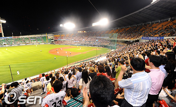 2010 프로야구 시즌 관중이 400만을 돌파한 가운데 경기장을 가득메운 관중들이 응원을 펼치고 있다 /soul1014@osen.co.kr