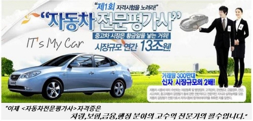 자동차협회(KAA, www.kaa21.or.kr)가 주관하는 자동차전문 평가사 시험이 치러진다. 올해 처음으로 시행되는 자동차전문평가사 시험은 자동차 선진국 중고 시장에서 활동 중인 자동차전문평가사들을 처음으로 배출하는 것으로 선진국에서는 이들이 고소득 전문직업으로 인정을 받고 있다. 앞으로 연간 18조원(차량180만대) 규모의 거대한 시장이 형성된 우리나라에서도 이 직업을 가진 이들이 자동차 시장에서 신뢰받는 중개인으로서 인정받는 직업으로 성장할 것으로 기대 되고 있다.