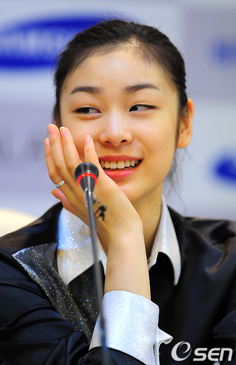 김연아가 간담회 도중 미소를 짓고 있다. /jpnews@osen.co.kr