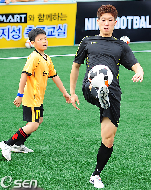 이날 행사에서 박지성은 파트리스 에브라(29·맨유), 이청용(22·볼턴)와 함께 'JSFC배 미니게임'을 열어 아이들과 함께 경기를 했다.