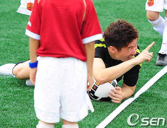 이날 행사에서 박지성은 파트리스 에브라(29·맨유), 이청용(22·볼턴)와 함께 'JSFC배 미니게임'을 열어 아이들과 함께 경기를 했다.