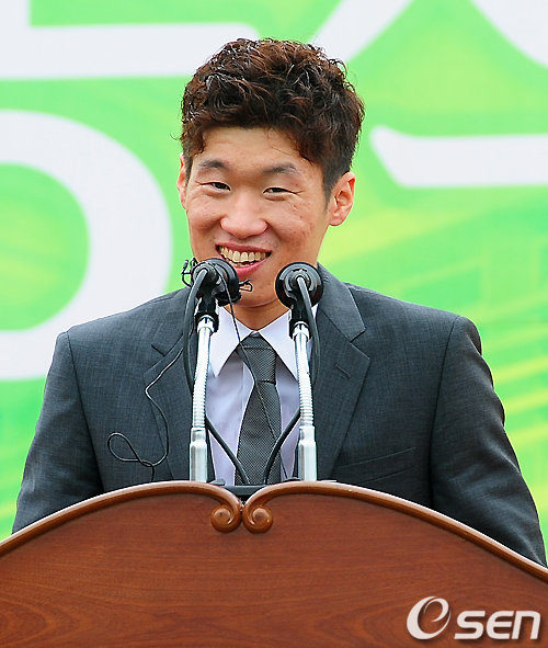 개관식에서 박지성이 단상에 올라 인사말을 하고 있다./rumi@osen.co.kr