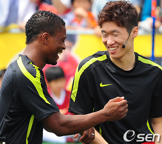 이날 행사에서 박지성은 파트리스 에브라(29·맨유), 이청용(22·볼턴)와 함께 'JSFC배 미니게임'을 열어 아이들과 함께 경기를 했다.