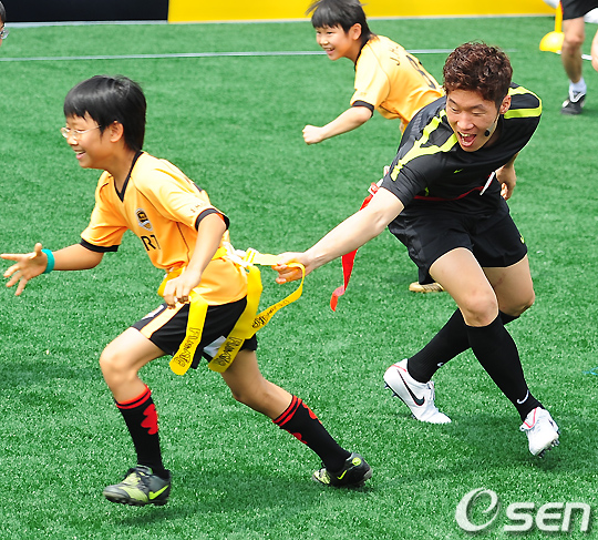 이날 행사에서 박지성은 파트리스 에브라(29·맨유), 이청용(22·볼턴)와 함께 'JSFC배 미니게임'을 열어 아이들과 함께 경기를 했다.