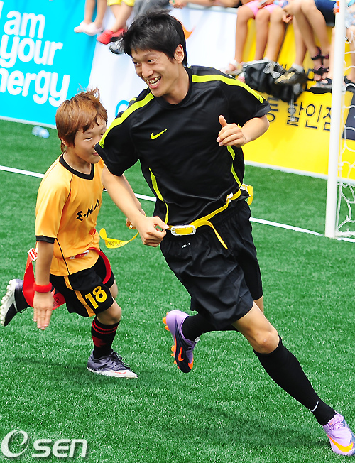 이날 행사에서 박지성은 파트리스 에브라(29·맨유), 이청용(22·볼턴)와 함께 'JSFC배 미니게임'을 열어 아이들과 함께 경기를 했다.