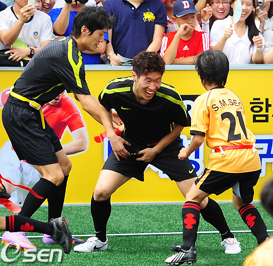 이날 행사에서 박지성은 파트리스 에브라(29·맨유), 이청용(22·볼턴)와 함께 'JSFC배 미니게임'을 열어 아이들과 함께 경기를 했다.