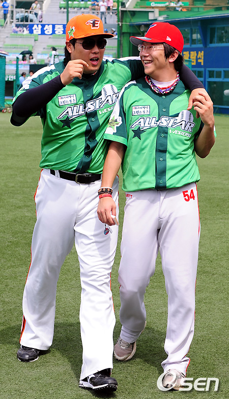 경기전 마구마구 야구게임을 마친 류현진과 양현종이 덕아웃으로 걸어가고 있다. /soul1014@osen.co.kr