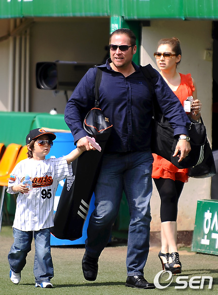 경기전 롯데 가르시아가 가족과 함께 경기장으로 걸어오고 있다. /soul1014@osen.co.kr