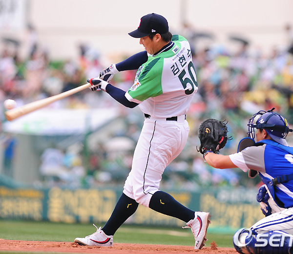 경기 전 벌어진 홈런 더비서 10개의 홈런을 친 김현수가 호쾌한 타격을 선보이고 있다. /spjj@osen.co.kr