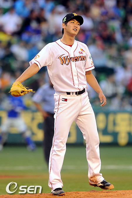 1회초 웨스턴리그 선발투수 김광현이 6실점을 허용한뒤 아쉬워하고 있다. /soul1014@osen.co.kr