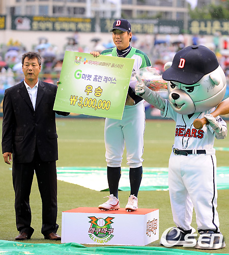 경기전 두산 김현수가 홈런더비서 홈런 10개로 우승해 시상하고 있다. /soul1014@osen.co.kr