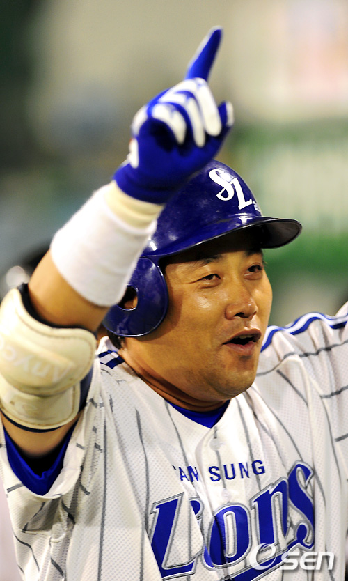 7회말 스리런 홈런을 친 양준혁이 환호하고  있다. /spjj@osen.co.kr