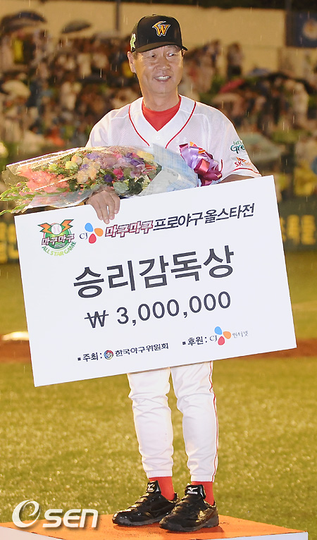 경기 종료 후 SK 김성근 감독이 승리감독상을 수상하고 있다. /soul1014@osen.co.kr