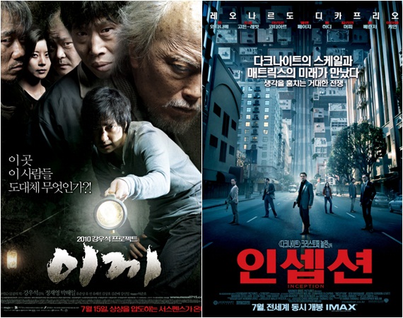 극장가 쌍끌이를 시작한 한국과 미국, 양국의 화제작 '이끼'와 '인셉션'이 관객들의 '결말 논의'로 활발하다.