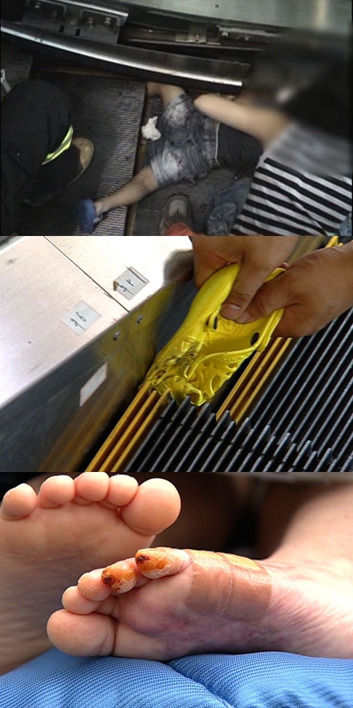 실험결과는 놀라웠다. 총 30회씩의 실험 결과 운동화는 단 한 번도 끼이지 않은 반면에 스펀지 샌들은 각각 8회, 9회 끼이는 결과를 나타냈다. 순식간에 강한 힘으로 빨려 들어가기에 어린이가 신고 있었다면 끔찍한 일을 당했을 수도 있었던 상황. 실제 에스컬레이터에 신발이 끼이는 사고도 많았다. 한 아이는 지난해 끼임 사고로 발의 3분의 1이 떨어질 뻔한 심각한 상처를 입기도 했다.