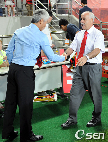 경기전 서울 빙가다 감독과 제주 박경훈 감독이 인사를 나누고 있다 . /soul1014@osen.co.kr