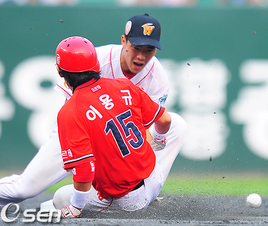 5회초 2사 주자 1루 KIA 채종범 타석에서 1루 주자 이용규가 2루 도루에 성공할때 SK 2루수 정근우가 볼을 놓치고 있다./rumi@osen.co.kr