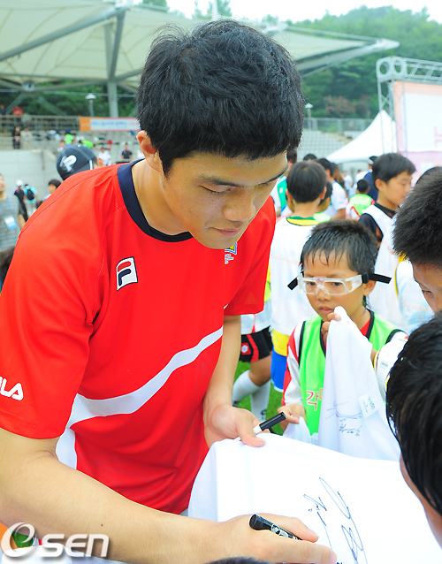 행사를 마치고 정성룡이 아이들에게 사인을 해주고 있다./rumi@osen.co.kr