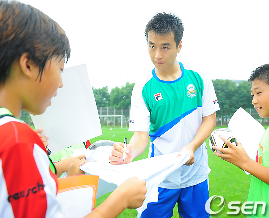 이동국이 행사를 마치고 아이들에게 사인을 해주고 있다./rumi@osen.co.kr