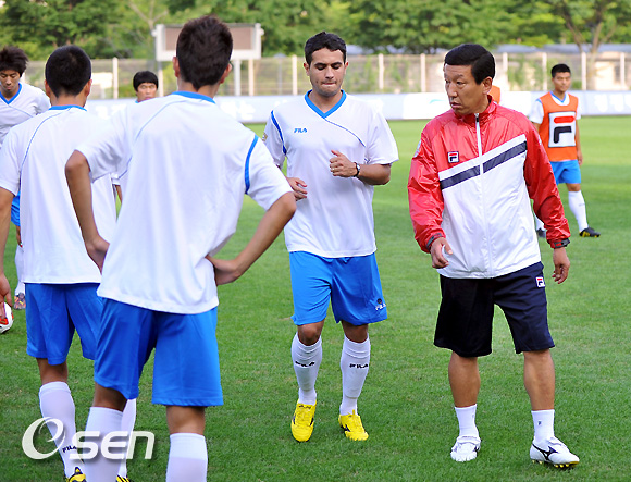 최강희 감독이 지켜보는 가운데 K리그 올스타팀이 훈련을 하고 있다. /soul1014@osen.co.kr