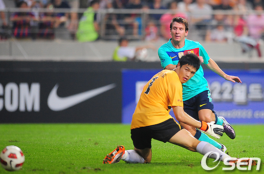 메시는 전반 39분 이브라히모비치와 2대1 패스를 주고 받은 후 골문쪽으로 파고들어 골키퍼와 일대일로 맞서는 기회를 만들었지만 정성룡 골키퍼가 앞으로 뛰쳐나와 슈팅 각도를 좁히며 실점 위기를 벗어났다.
