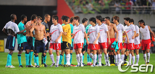 경기후 바르셀로나 선수들과 K리그 올스타 선수들이 악수를 나누고 있다. /jpnews@osen.co.kr