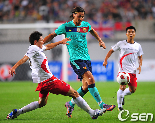 바르셀로나는 4일 오후 8시 서울 월드컵경기장에서 열린 K리그 올스타와 친선 경기에서 메시를 비롯 즐라탄 이브라히모비치, 다니엘 알베스 등 간판 선수들을 길지 않게 선보이며 5-2로 이겼다.