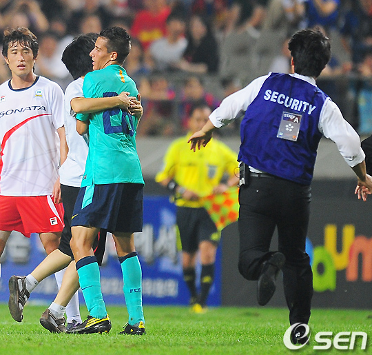 올스타전의 경호를 책임졌던 '티알아이 인터내셔널' 관계자는 "오늘 바르셀로나 선수들을 습격한 팬은 '점프닷컴'의 관계자라고 한다. 바르셀로나가 또 언제 방문할지 모른다는 생각에 난입했다고 들었다"고 전했다.