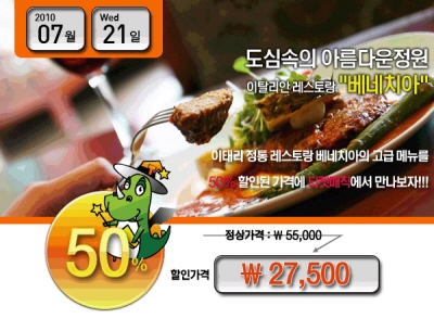 ▶음식점, 공연, 스파, 뷰티, 여행 등 지정인원 이상 모이면 50% 할인