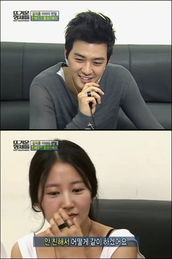 두 사람의 열애설이 수면 위로 떠오른 건 지난 15일 방송된 MBC ‘일요일 일요일 밤에-뜨거운 형제들’(이하 뜨거운 형제들)에서부터다. 이날 게스트로 등장한 김지훈은 케이블 채널 tvN 드라마 ‘기찰비록’에 출연 중인 임정은과 친해지고 싶다는 소원을 말했다. 이에 탁재훈이 김지훈을 대신해 아바타로 등장, 임정은과 다양한 이야기를 나눴다.