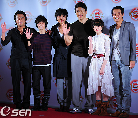 기자회견을 마치고 무대 위에서 류승룡 류덕환 한재석 김수로 심은경과 장진 감독이 포토타임을 갖고 있다./rumi@osen.co.kr