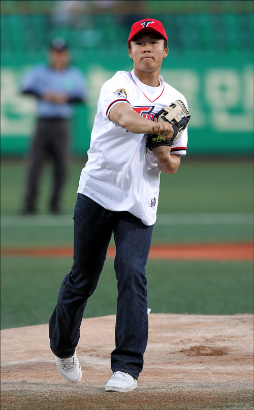 KIA 신인 드래프트 1순위로 입단한 덕수고 우완투수 한승혁(18)이 3일 광주 KIA-롯데전 시구를 위해 광주구장을 찾았다. 한승혁은 직접 시구 의사를 밝혔고 경기전 2순위(9번)로 지명받은 투수 홍건희(화순고)와 함께 시구와 시타를 맡았다.