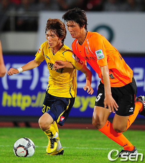 후반 성남 조재철이 제주 박현범과 볼을 다투고 있다. /jpnews@osen.co.kr