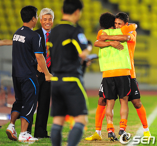 후반 제주 박경훈 감독이 네코의 선제골에 환하게 미소짓고 있다. /jpnews@osen.co.kr